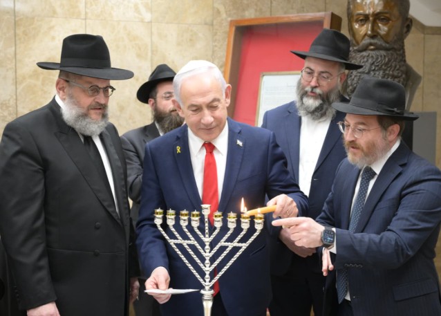 Netanyahu Lights Final Hanukkah Candle with.